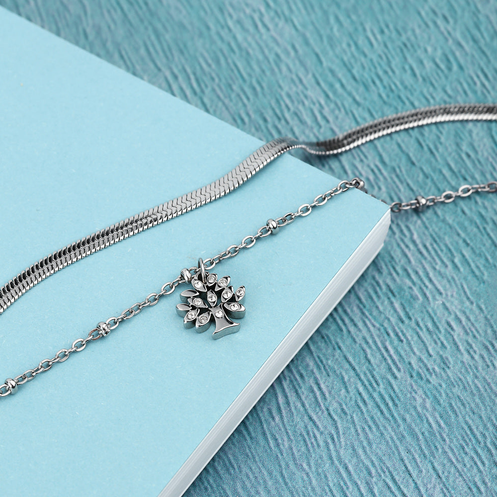 Women's Silver Double Chain Bracelet with Family Tree Pendant, Adjustable, LA PETITE STORY