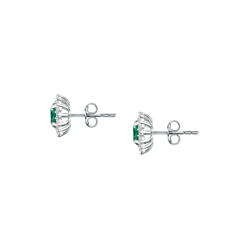 Screw-back earrings made of recycled 925 silver with an oval emerald-green stone and rays of zirconia stones. The earrings are...... Read more