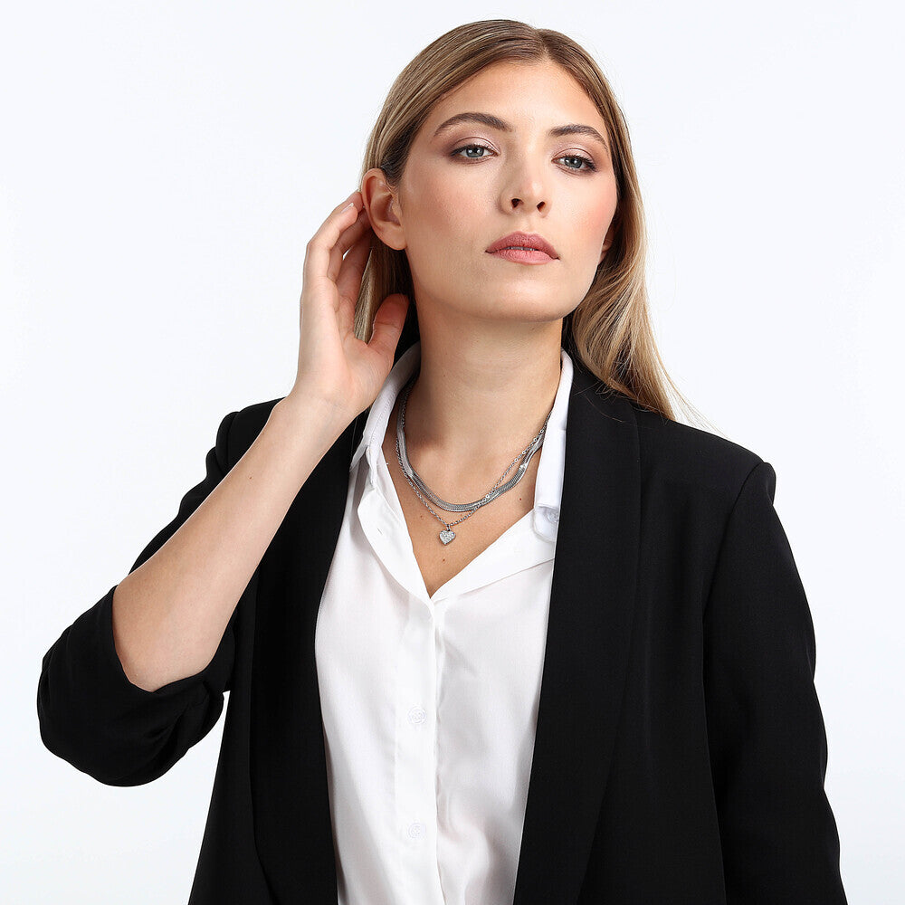 Women's Double Chain Necklace with Heart Pendant, LA PETITE STORY