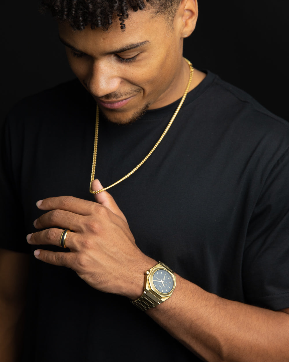 The Dux Gold Necklace features a 3mm fox tail chain with an 18-karat gold plated finish. It is made from...... Read more